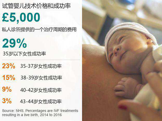 在英国,一个试管婴儿周期需要花费5000至1万英镑(相当于人民币44698至89396元),而其成功率在30%。即便英国医疗服务体系(NHS)可为40岁以下、两年内无法怀孕的女士提供3个试管婴儿治疗周期,为40—42岁女性提供1个周期,但其实极少人可以完整获得这一权益。