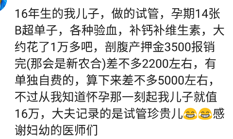 你们生孩子花了多少钱?网友:16年生娃,试管婴儿,花了1万多