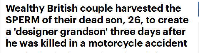 参与其中的斯莫瑞希医生表示,他曾治疗过许多知名人士,包括政客、贵族,他们试图绕开英国生育法,孕育出新生命。这对英国夫妇失去了儿子,他们迫切地想要一个孙子,能够帮助他们是一种荣幸。他对帮助这对夫妇没有道德上的异议,并证实剩余的精子和三个胚胎仍在储存中。他很高兴能够让一个悲剧故事有一个快乐的结局。