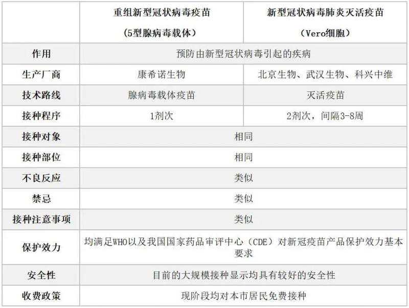 上海市疾控中心方面透露,与之前使用的三种新冠病毒灭活疫苗相比,这款由康希诺生产的腺病毒载体疫苗在技术原理、接种程序方面完全不同,但在接种方式、接种年龄范围、安全性方面都相同。