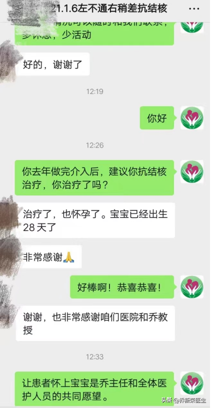 抗结核治疗半年余,停药后试孕第一月就怀上了,患者2022年4月底再次发来喜讯,宝宝都出生28天了。