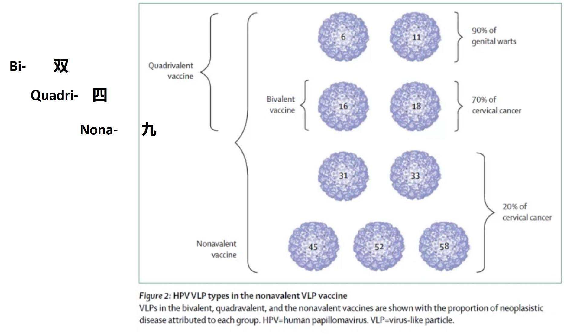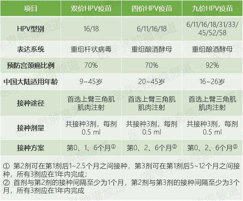 目前有三种HPV疫苗:2价(两种HPV亚型)、4价(四种HPV亚型)和9价(九种HPV亚型)。