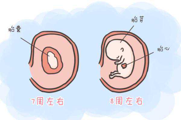 1、孕7周左右:检查孕囊、胎心、胎芽