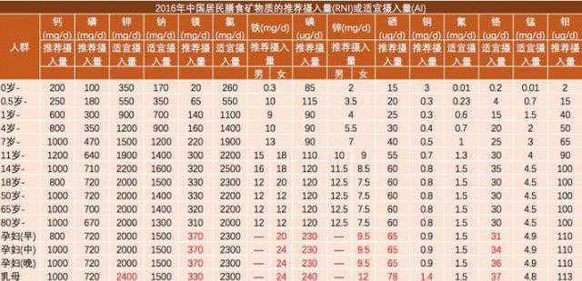 附各个年龄阶段人体所需要的维生素及矿物质含量表(红色为孕期):