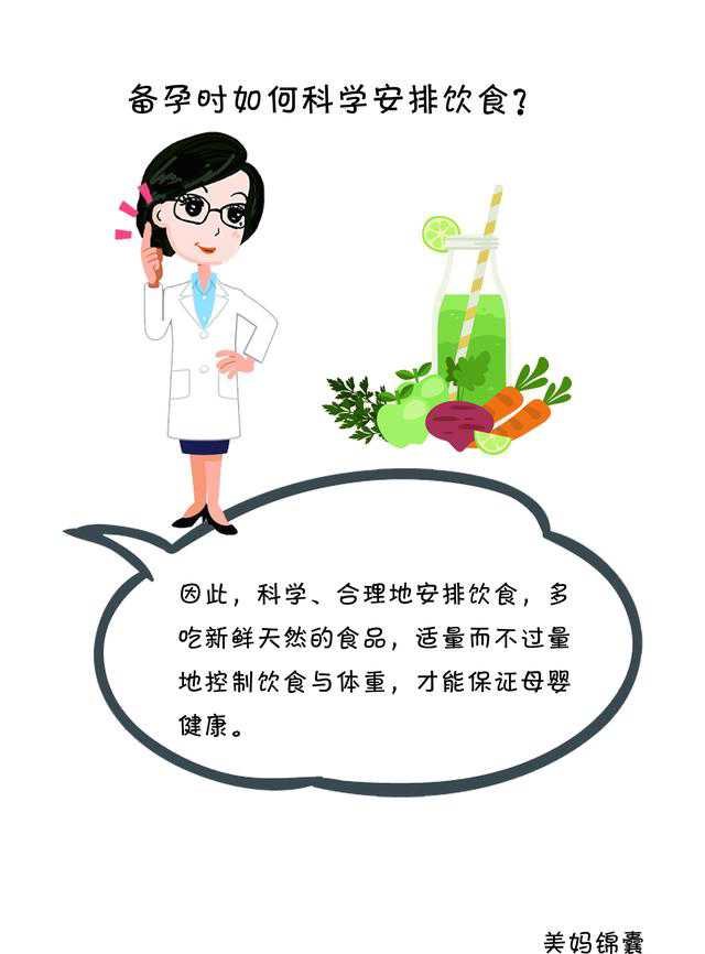 还有备孕期及孕期的营养饮食,并不是吃得越多越好,反倒因为现在生活变得越来越好,导致出现营养过剩、体重过重的现象,这会给妈妈们增加行动负担,同时给分娩过程带来困难。有些孕产妇在产后多年仍不能恢复体型,也是与孕前没有养成合理的饮食习惯有关系的。因此,科学、合理地安排饮食,多吃新鲜天然的食品,适量而不过量地控制饮食与体重,才能保证母婴健康。