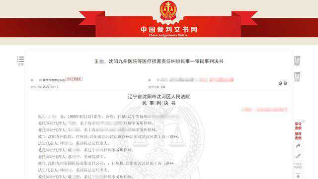 近日,潇湘晨报记者从中国裁判文书网获悉,法院认为沈阳九州医院对王某的诊治行为构成医疗事故,应赔偿王某各项损失共计三十余万元。
