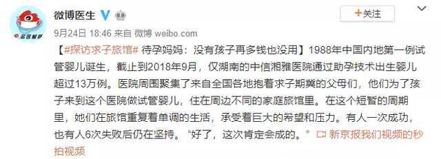 有很多夫妻慕名而来做试管婴儿,他们在移植期间常住在医院周边的多个家庭旅店里,因此在这些医院周边旅店形成了一个特殊的群落“求子旅馆”,这些抱着求子希望而来、等待怀孕的女性也被称为“待孕”妈妈。