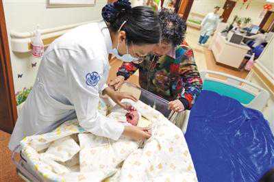 昨日,北京大学第三医院,护士照看着我国首个“试管婴儿”产下的孩子。