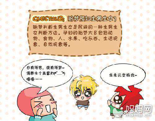 梦见鲤鱼,表示将来会生下才艺高超、美丽、智慧的女儿;梦见鳌虾,生女儿的可能性很大;梦见鸡蛋,将来生女儿的几率很高;梦见蝴蝶或蝴蝶翩翩起舞,表示生女儿。