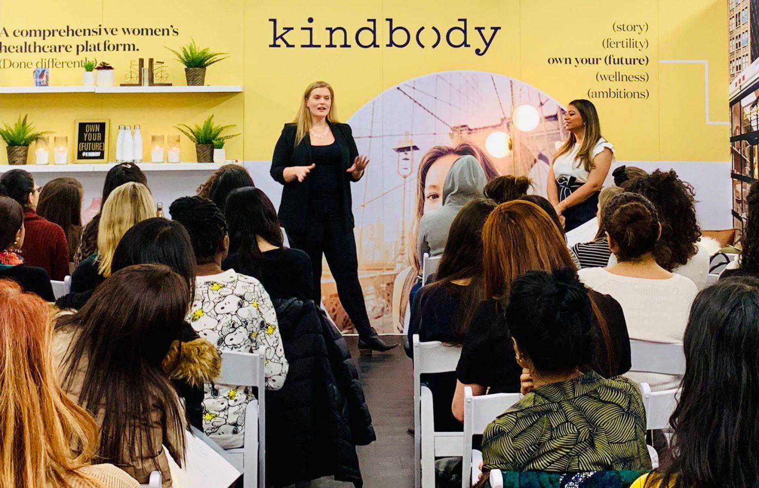 Kindbody的冻卵说明会,不像企业简报,更像一场职业女性的时尚派对:一个星期二晚上,100多名20几岁与30几岁女性,聚集在纽约曼哈顿一个明黄色的空间,拿起气泡白酒彼此干杯,背景流淌着这群女性的欢声笑语和舒展身心的轻音乐。