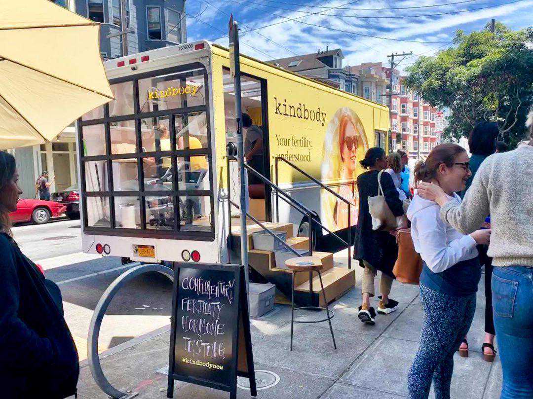 像Kindbody这种提供体检、营养咨询、心灵咨商、冻卵手术、卵子储存、试管婴儿、基因检测,甚至还有产后复工咨询…等生育上中下游一条龙服务的女性精品诊所,迅速地出现在像纽约、洛杉矶、旧金山这种大都市的角落里。跟传统医院、诊所不同,除了比在医院、诊所还低的价格提供人工生育服务外,这些公司还提供女性在面对生育各个环节时所需的身心咨询、前期说明会、社群聚会,甚至还像学生贷款一样,为想要冻卵或进行试管婴儿的女性提供贷款服务…等等。Kindbody甚至将一辆行动诊疗车开上纽约街头,明黄色的公车上提供女性免费的身体检查。