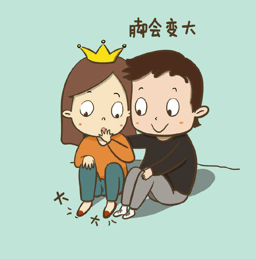 2.孕期水肿。常发生于孕晚期,由于子宫不断增大,准妈妈下肢负重增加,血液循环受到影响,压迫静脉回流,容易出现水肿现象,使得脚部变大。
