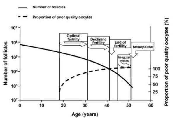 28岁至35岁之间是一个平台期,不过开始有点走下坡路了,35岁至42岁之间更是一个下降的陡坡,女性的生育率会明显下降,到42岁之后生育机会很少,到49岁是女性绝经的年龄,基本上生育能力完全丧失。男性成熟的稍微晚一点,所以以“八年”为一个阶段进行计算。
