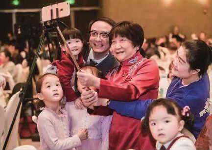 湖南首例试管婴儿诞生30周年纪念活动上,卢光琇教授和试管婴儿宝宝们欢乐合影。受访者供图
