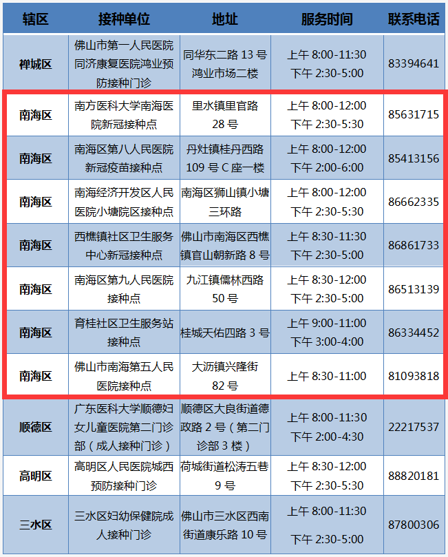 符合预约接种条件人员,可致电以下门诊进行预约。接下来,可预约的新冠病毒疫苗接种点将会不断增加,同时,增加其他更加便利的预约方式。